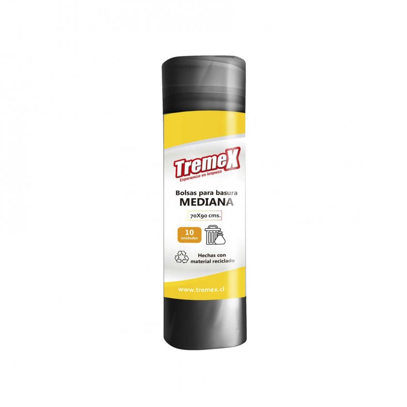 Bolsa de basura TREMEX para la recolección y manejo de residuos. Medida 70 x 90. Rollo de 10 U. Producto pensado para uso doméstico, comercial o institucional en tareas de aseo y mantención.