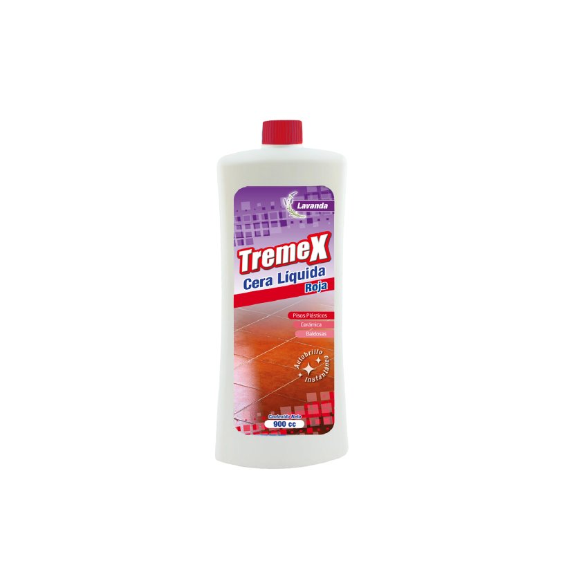Cera líquida TREMEX roja, 900 ml. Protege y da brillo a pisos en tareas de mantención doméstica, comercial e institucional.