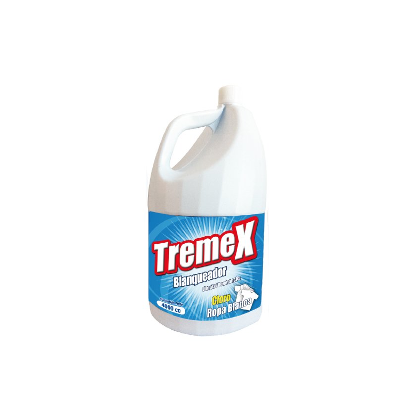Cloro TREMEX para ropa blanca, 4 L. Limpieza, sanitización y blanqueado para uso doméstico, comercial e institucional.