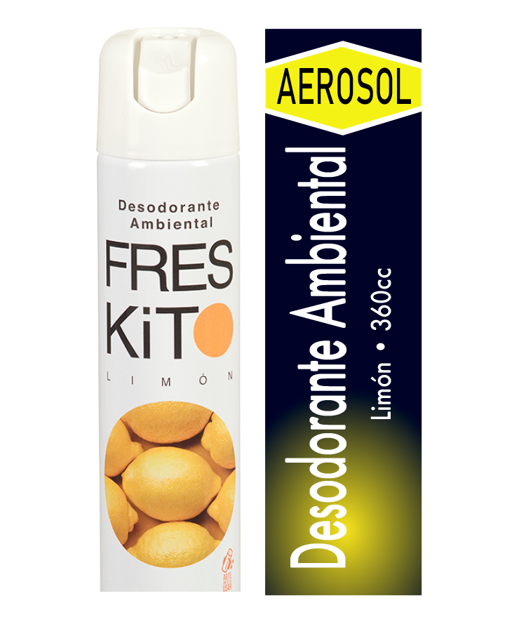 Desodorante ambiental Freskit en aerosol aroma limón, 360 ml. Refresca y perfuma hogares, oficinas, comercios y espacios compartidos.
