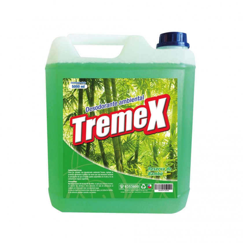 Desodorante ambiental TREMEX aroma bambú, bidón de 5 L. Refresca y perfuma ambientes en oficinas, comercios y espacios compartidos.
