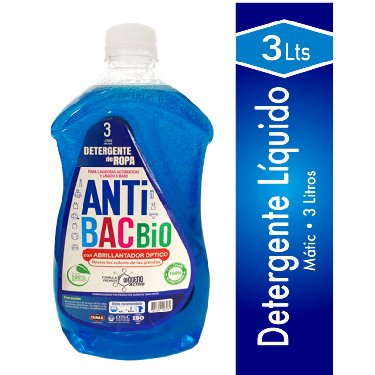 Detergente líquido ANTIBAC biodegradable, 3 L. Lavado y cuidado general de prendas en uso doméstico, comercial e institucional.