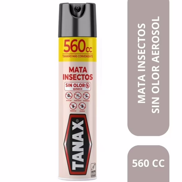 Insecticida TANAX en aerosol sin olor mata insectos. Presentación de 560 ml para hogares, oficinas y espacios de uso frecuente.