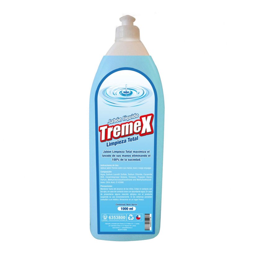 Jabón líquido TREMEX con triclosan, pensado para la higiene y limpieza diaria de manos. Su presentación de 1 L lo hace adecuado para hogares, oficinas, baños, comercios o espacios de atención, facilitando rutinas de higiene frecuentes.