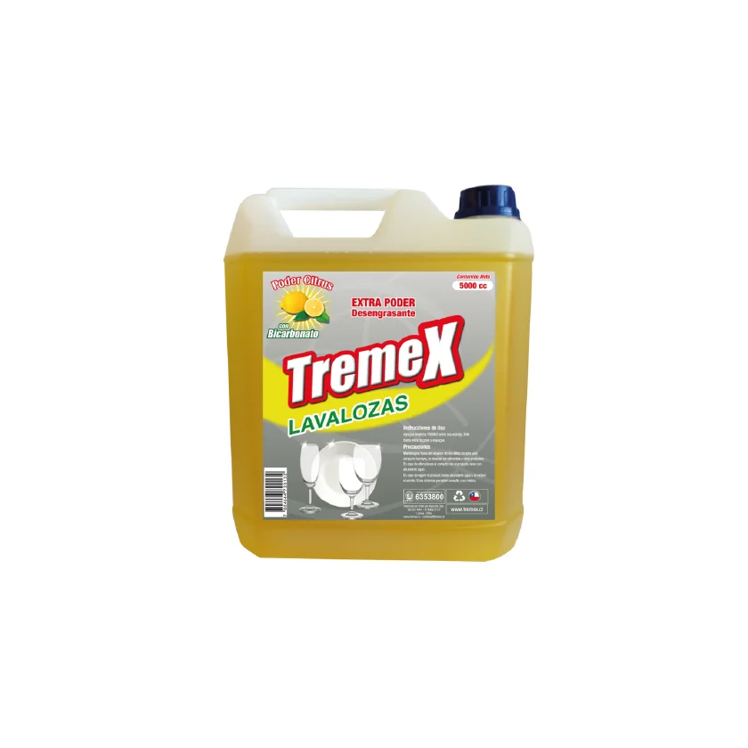 Lavaloza líquido de la marca TREMEX. Su presentación de 5 L lo hace adecuado para tareas de limpieza, higiene y mantención en hogares, oficinas, comercios o entornos institucionales. Pensado para la limpieza diaria de loza, utensilios y elementos de cocina.