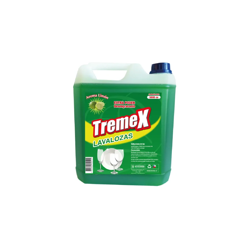 Lavaloza líquido de la marca TREMEX. Su presentación de 5 L lo hace adecuado para tareas de limpieza, higiene y mantención en hogares, oficinas, comercios o entornos institucionales. Pensado para la limpieza diaria de loza, utensilios y elementos de cocina.