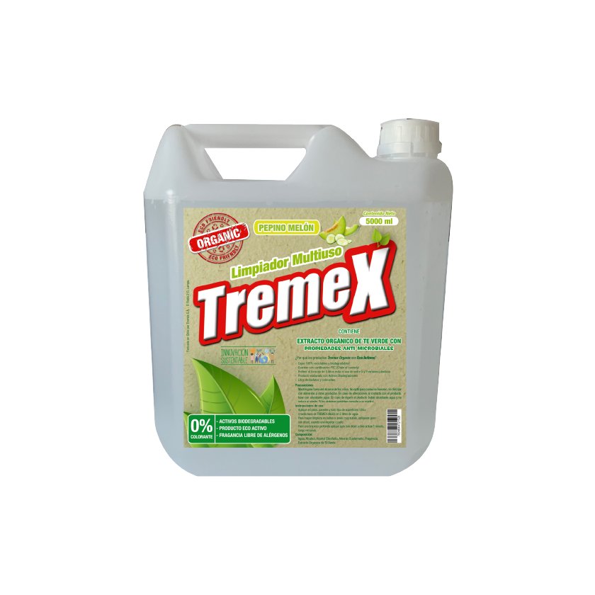 Limpiador de piso TREMEX Organic Ecoactivo pepino melón, 5 L. Aseo de pisos con fórmula biodegradable, alto rendimiento.